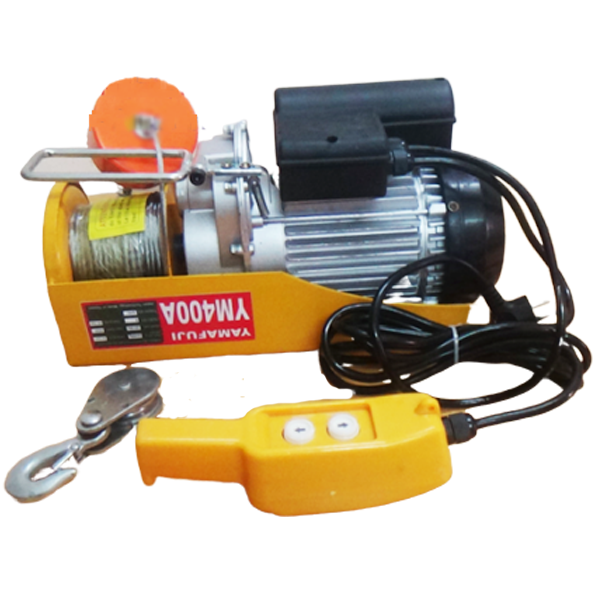 Tời điện Yamafuji YM400A Sử dụng moto được quấn bằng 100% dây đồng nguyên chất có công suất hoạt động 850W, có thể nâng vật có thể tải trọng từ 200 – 400kg, dây cáp chắc chắn từ 15-30m